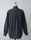 Vintage button down utility shirt in soft ash black. Chest pockets. Single button cuffs. Medium weight cotton twill fabric. Relaxed menswear fit.