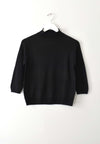 Vintage black silk ribbed knit top. Mock neck. Bracelet length sleeves. Lightweight and soft, great for layering.